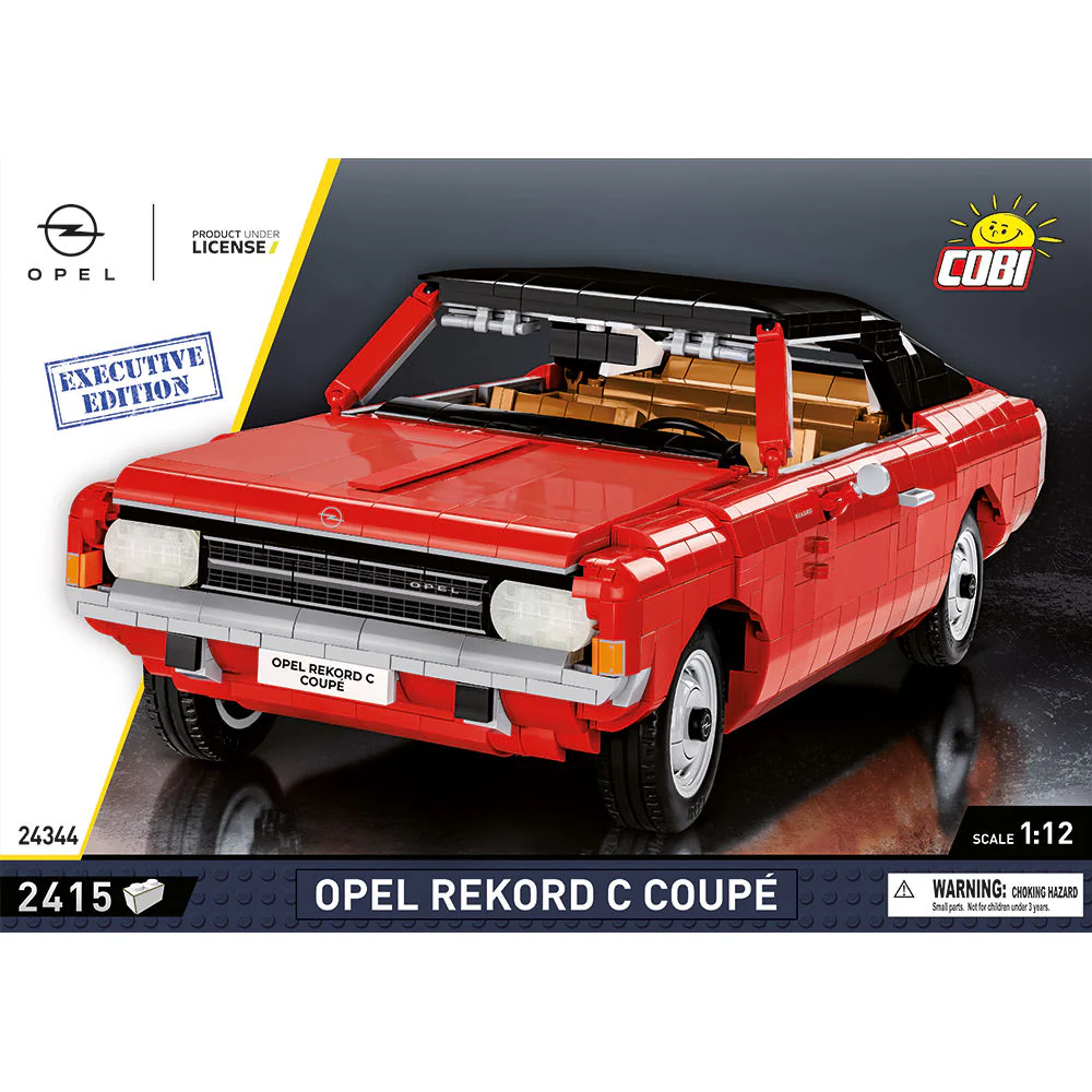 The well-known Opel Rekord C Coupé in an Executive Edition is another strong addition to the automotive series from COBI! The technically advanced block set in a large scale model 1:12 is 37.5 cm long and looks great on a black block stand with a plate with the name of the car on it. In addition, the Executive Edition model has a black roof.